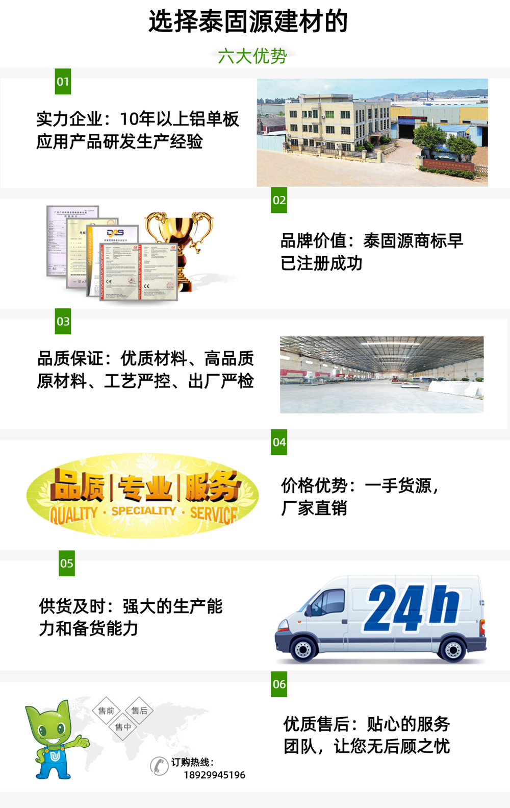 關(guān)于我們佛山市泰固源裝飾材料有限公司是一家研發(fā)、生產(chǎn)鋁單板和陶土板、航空板三大系列的大型企業(yè)。公司成立于二零一零年,鋁單板占地面積10000平米,陶土板占地面積300畝。擁有環(huán)境優(yōu)雅、寬敞、明亮的現(xiàn)代化標準廠房及辦公大樓。位于佛山市南海區(qū)里水勝利工業(yè)園,地理位置優(yōu)越。我司技術(shù)實力強大,生產(chǎn)管理科學(xué)嚴謹。它在引進意大利生產(chǎn)設(shè)備的基礎(chǔ)上,立足于持續(xù)革新制造工藝,使各項技術(shù)指標遠遠超出國家及行業(yè)標準,跨入先進水平行列,在經(jīng)濟和社會效益方面取得了巨大的成就。我司自主研發(fā)、生產(chǎn)泰固源鋁單板,泰固源陶土板這兩大系列產(chǎn)品,多年來,經(jīng)過公司全體員工的通力協(xié)作,我們的品牌產(chǎn)品(泰固源,辛源牌)得到業(yè)內(nèi)人士一致認可。銷售網(wǎng)點遍布國內(nèi),并與諸多國內(nèi)外客戶建立了長期友好的合作關(guān)系,產(chǎn)品銷往國內(nèi)并走向世界
